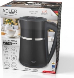 Iščete zanesljiv, hiter in varen grelnik za vsakodnevno uporabo? ADLER AD 1355 s prostornino 1,7 l ponuja higiensko nerjaveče notranje ohišje in dvojno steno, ki izboljšuje toplotno izolacijo ter ohranja površino hladnejšo na dotik. Eleganten črn videz se odlično poda k sodobni kuhinji.