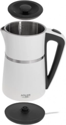 Grelnik ADLER AD 1355 ponuja hitro segrevanje vode, tih način delovanja in varno uporabo zaradi dvojnega plašča. Notranjost iz nerjavnega jekla zagotavlja čist okus vode in preprosto vzdrževanje, medtem ko plosko grelno telo pospeši segrevanje in olajša odstranjevanje vodnega kamna.