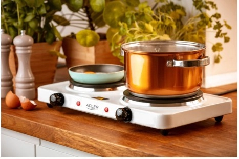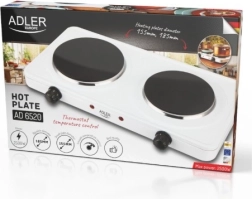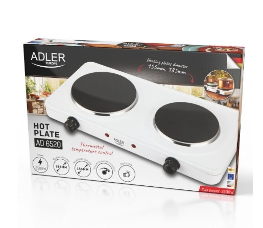 Iščete zanesljiv in prostorsko varčen kuhalnik za vsakodnevno kuhanje ali hitro pogrevanje? Dvojnosni električni kuhalnik ADLER AD 6520 združuje visoko moč 2500 W s kompaktno velikostjo, zato je odlična izbira za majhne kuhinje, vikende, pisarne in študentske domove. Zahvaljujoč dvema ploščama različnih premerov zlahka prilagodite posodo in slog priprave jedi.