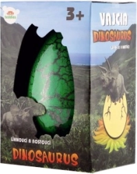 To barvito maxi jajce bo razveselilo tako fante kot dekleta. V jajcu je skrito presenečenje v obliki dinozavra. Da se dinozaver izvali, je treba jajce potopiti v skledo z mlačno vodo. Približno po 24–48 urah bo lupina popokala in dinozaver se bo začel izvaljevati. Otroci lahko postopoma opazujejo, kako se dinozaver izvali iz jajca. Bo to T-rex, stegozaver ali brontozaver? Ali pa kakšen povsem drugačen dinozaver? To bodo izvedeli približno v 72 urah.