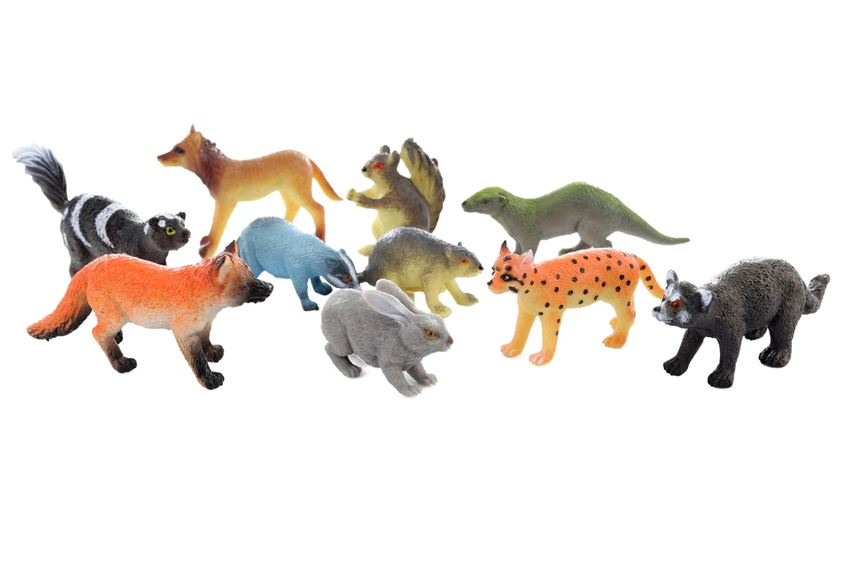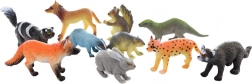 Komplet prinaša priljubljene prebivalce gozda – lisico, zajca, risa, veverico, jazbeca, volka, vidro, bobra, rakuna in skunka. Vsaka figurica je iz trpežne plastike, kompaktne mere pa so popolne za igro doma, na potovanjih in za didaktične aktivnosti.