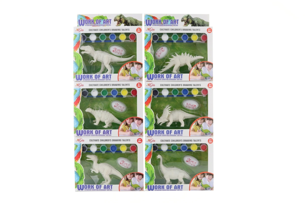 Ta komplet za barvanje z dinozavrom je odlična izbira za male ustvarjalce. Z vključenimi barvami in čopičem lahko otroci dinozavra preprosto okrasijo po svoji domišljiji. Jajce lahko služi za shranjevanje končanega izdelka ali kot del igre.