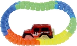 Uživajte v odličnih dirkah s svetlečo prilagodljivo stezo, ki jo preprosto sestavite po lastni domišljiji. Deli se preprosto zaskočijo skupaj, stezo pa lahko kadarkoli preoblikujete – ravnine, zavoji in zanke ne predstavljajo težav po zaslugi upogljivih segmentov.