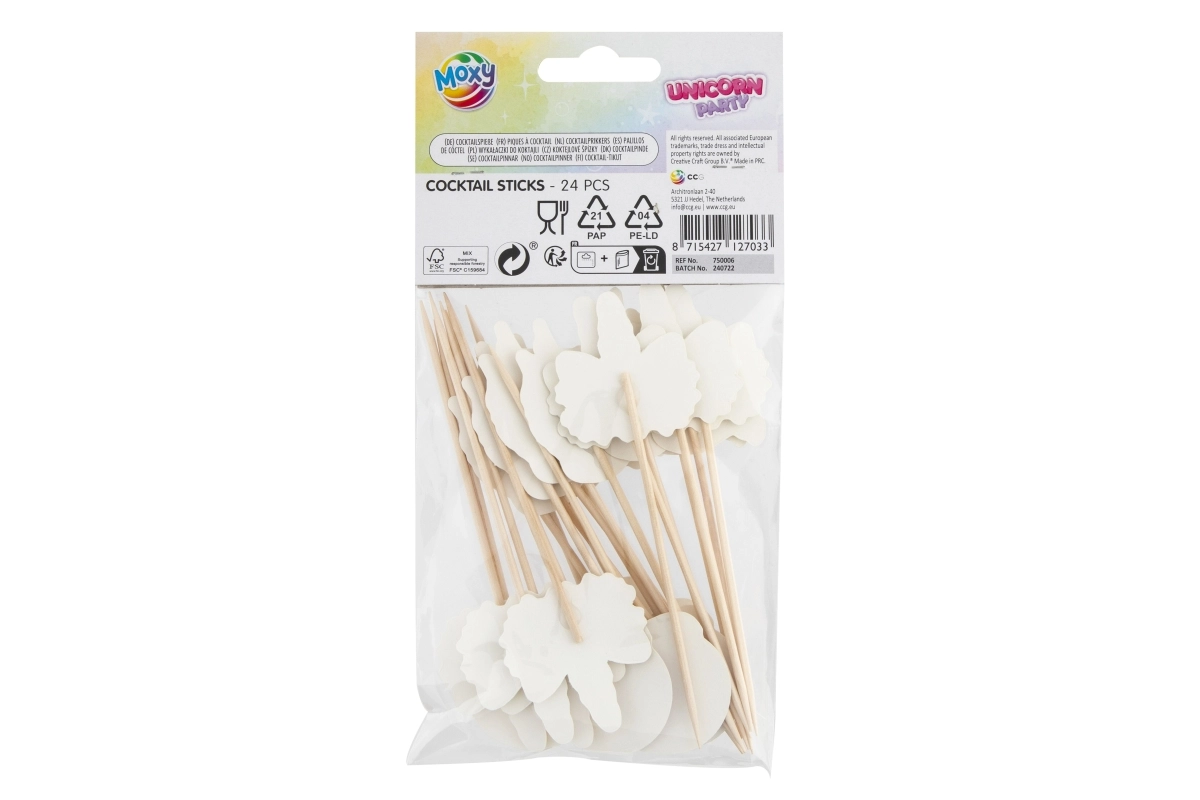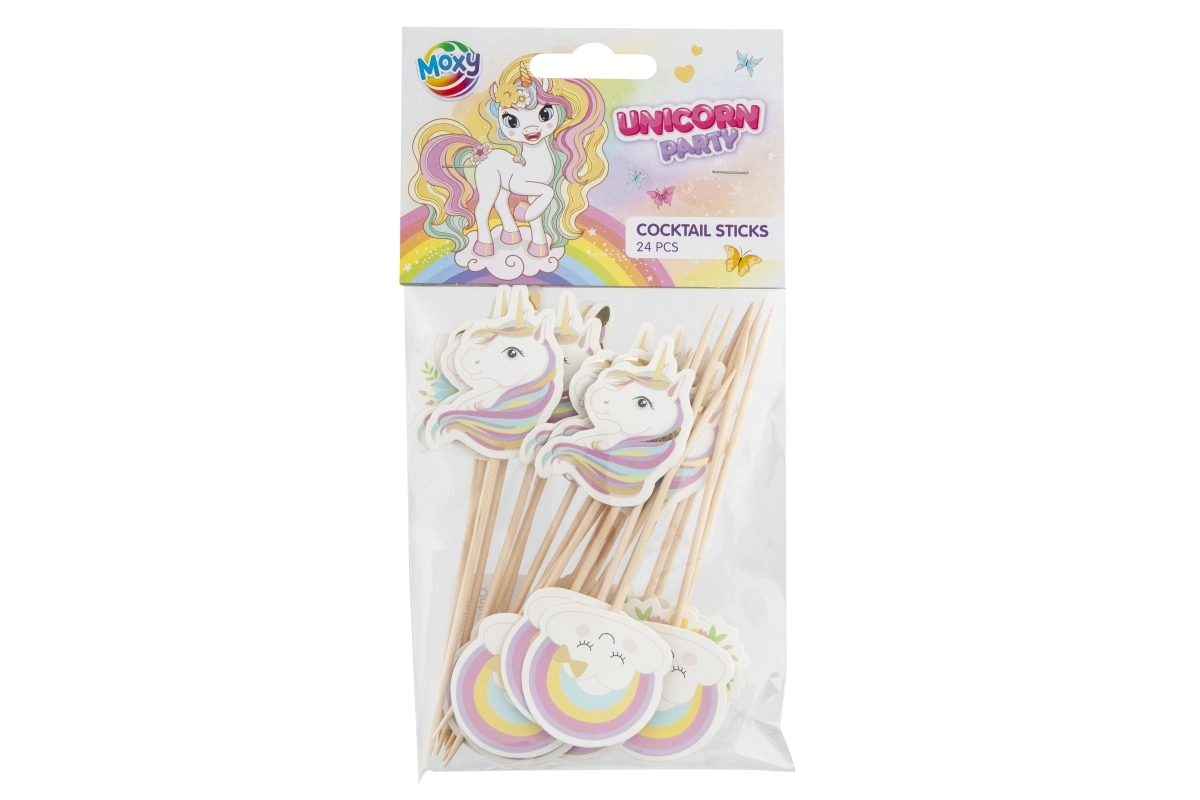 Stilne koktajlne palčke z motivom samoroga bodo vašim prigrizkom dodale pravljičen videz. Leseno nabodalo in papirnata dekoracija sta popolna za serviranje prigrizkov, sladic in pijač. V enem pakiranju je 24 kosov, zato zlahka zadostujejo tudi za večjo zabavo.