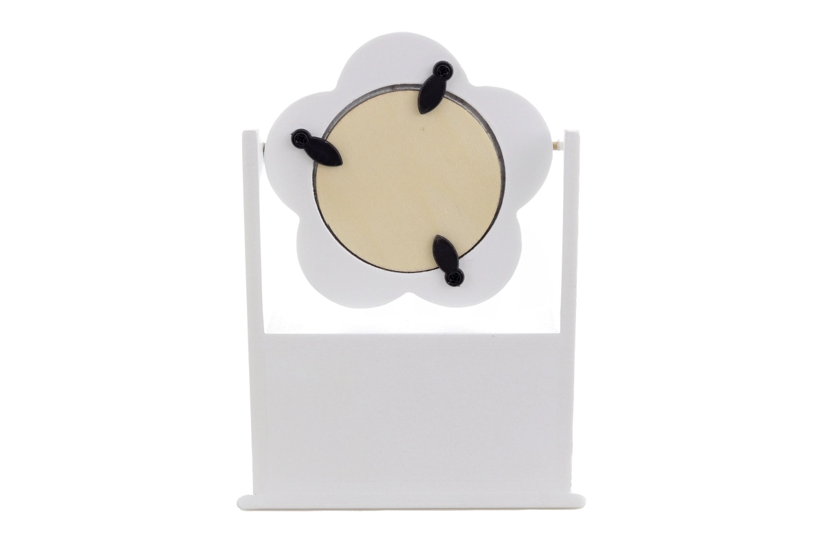 Zgornje ogledalce v obliki cveta omogoča udobno preizkušanje dodatkov, spodnji izvlečni predalček pa poskrbi, da je vse lepo pregledno na svojem mestu. Kakovostna lesena konstrukcija zagotavlja stabilnost in dolgo življenjsko dobo.