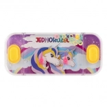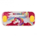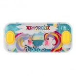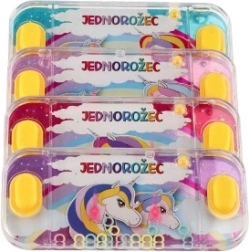Igra gre v žep, ne potrebuje baterij in zabava doma ter na poti. Vsak kos je dobavljen v enem izmed razpoložljivih motivov s samorogi.