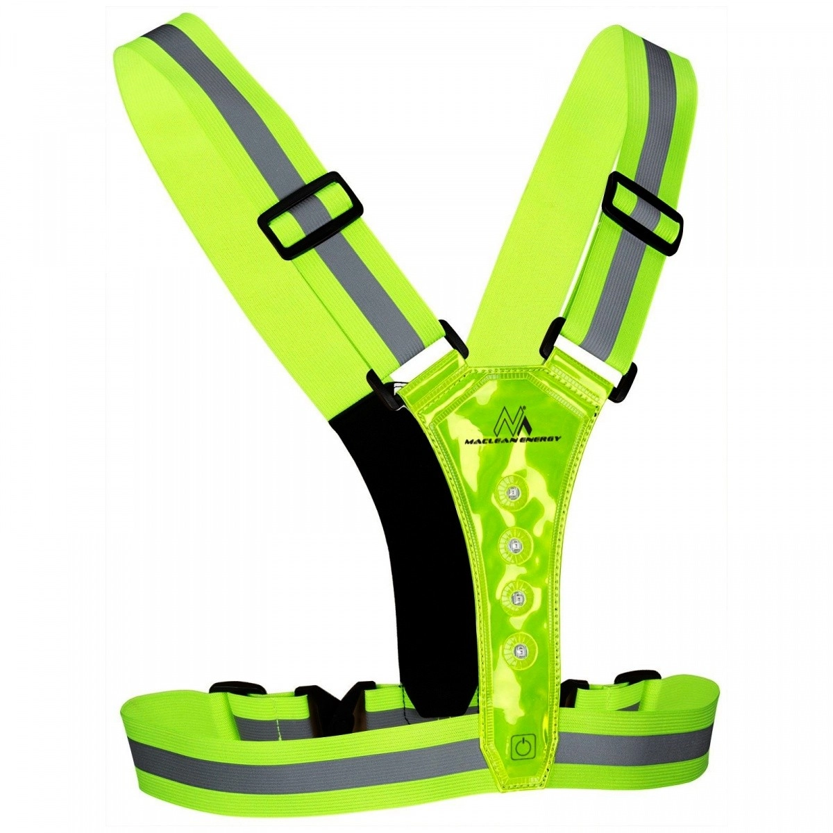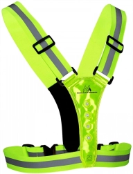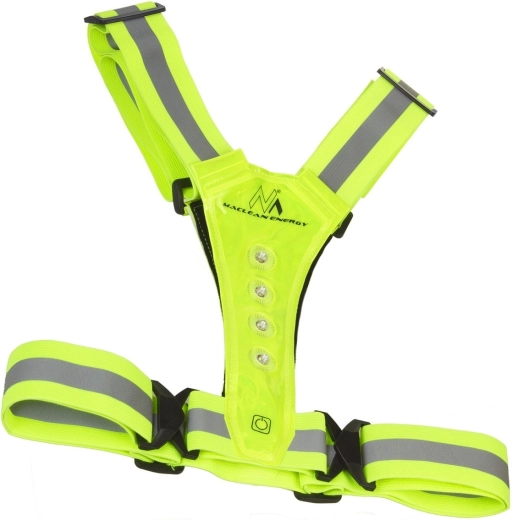 Oprsnica združuje visoko vidnost odsevnih elementov z aktivno LED osvetlitvijo za zanesljivo zaščito pri aktivnostih na prostem. Zahvaljujoč štirim nastavljivim zaponkam in elastičnim trakovom jo zlahka oblečete preko majice, športnega dresa ali zimske jakne. Bele LED na eni strani in rdeče na drugi jasno pomagajo ločiti smer gibanja.