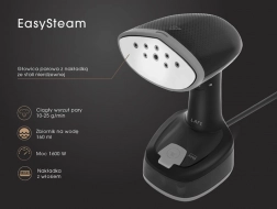 Funkcija vertikalnega parjenja omogoča urejanje suknjičev, oblek ali zaves neposredno na obešalniku. Zložljiv ročaj in kompaktne mere naredijo EasySteam odličnega sopotnika na poti, medtem ko rezervoar za vodo s prostornino 160 ml zadostuje za hitre popravke več kosov oblačil.