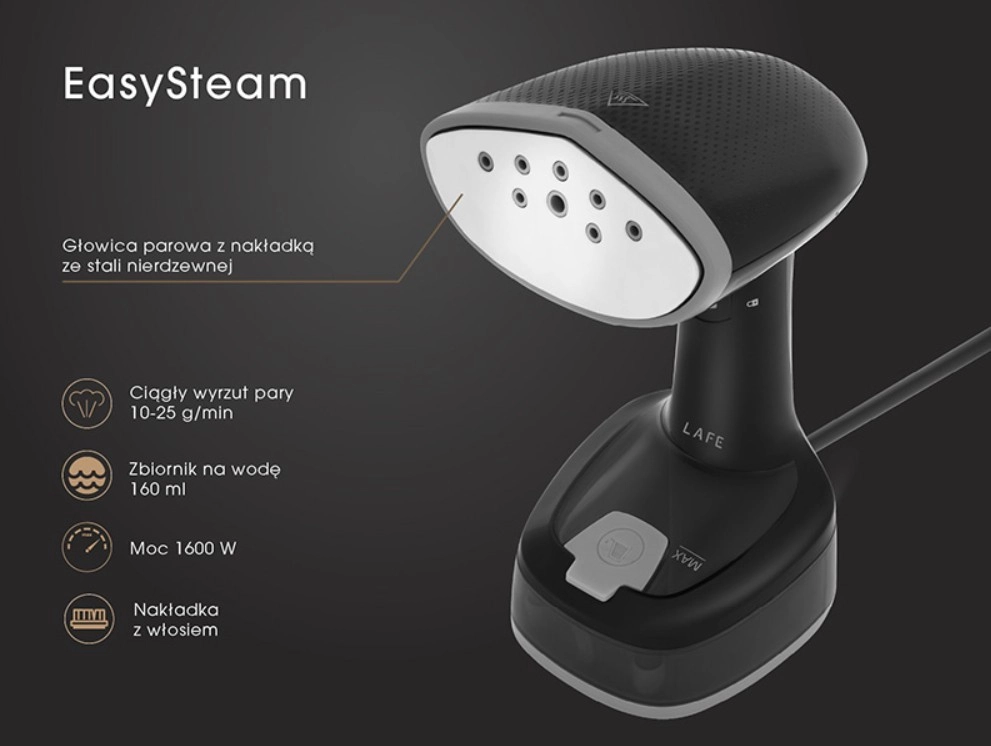 Lafe EasySteam je praktična alternativa likalniku za hitro in nežno glajenje oblačil. Z močjo 1600 W in stabilnim parnim izpustom 15–25 g/min se spopade z vsakodnevnimi gubami, ne da bi poškodoval občutljive materiale. Nerjavna plošča enakomerno razporeja paro za učinkovit rezultat.
