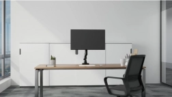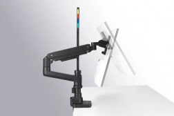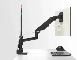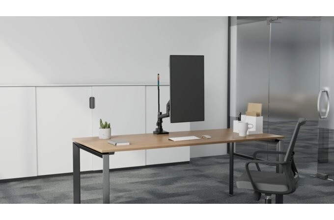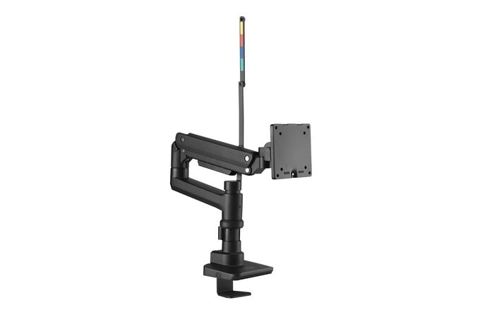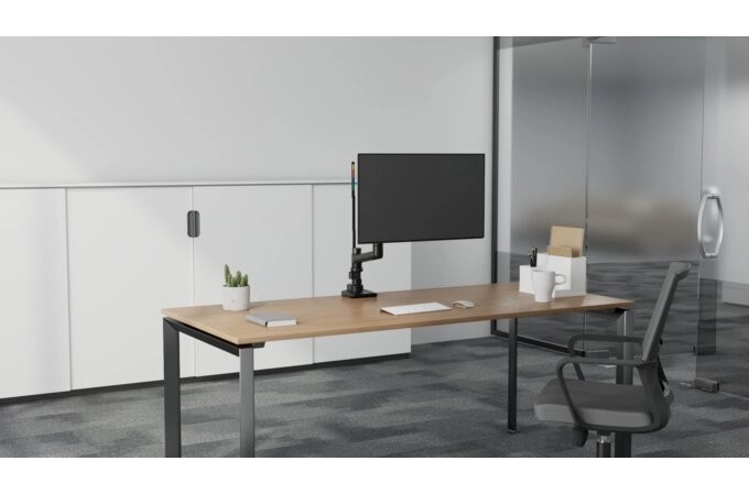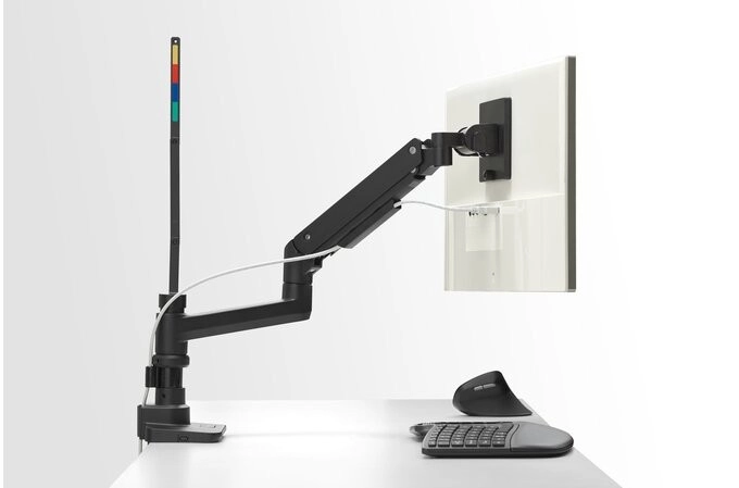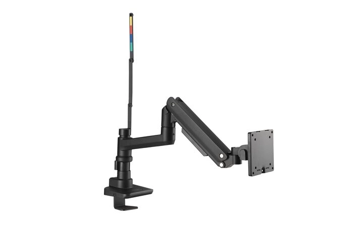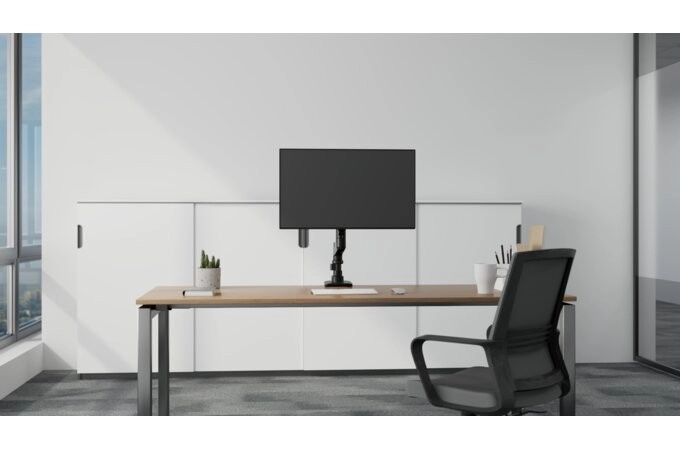 Roka je zasnovana za velike in težke zaslone – podpira en monitor do 49" in 20 kg z nosilci VESA 75/100/200/300. Prednameščena C-sponka pospeši montažo, hitro snemljive VESA ploščice pa olajšajo namestitev ali odstranitev monitorja. Integriran kanal za vodenje kablov ohranja delovno površino čisto in pregledno.