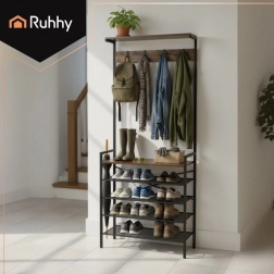 Stojalo je zasnovano za vsakodnevno uporabo – stabilen okvir prenese obremenitev, zaščitne nogice preprečujejo praskanje tal, montaža pa je stvar nekaj minut. Idealno za predsobo, garderobo ali pisarno, kjer boste cenili maksimalno funkcionalnost na majhnem prostoru.