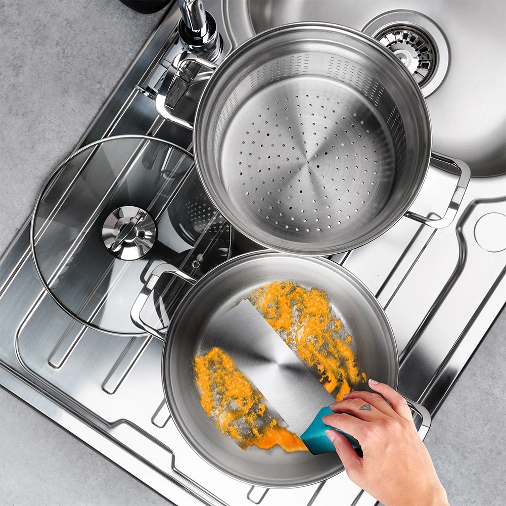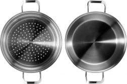Polirano nerjavno jeklo je higiensko in odporno proti koroziji. Set je primeren za pomivalni stroj, ročaji pa zagotavljajo varno rokovanje.