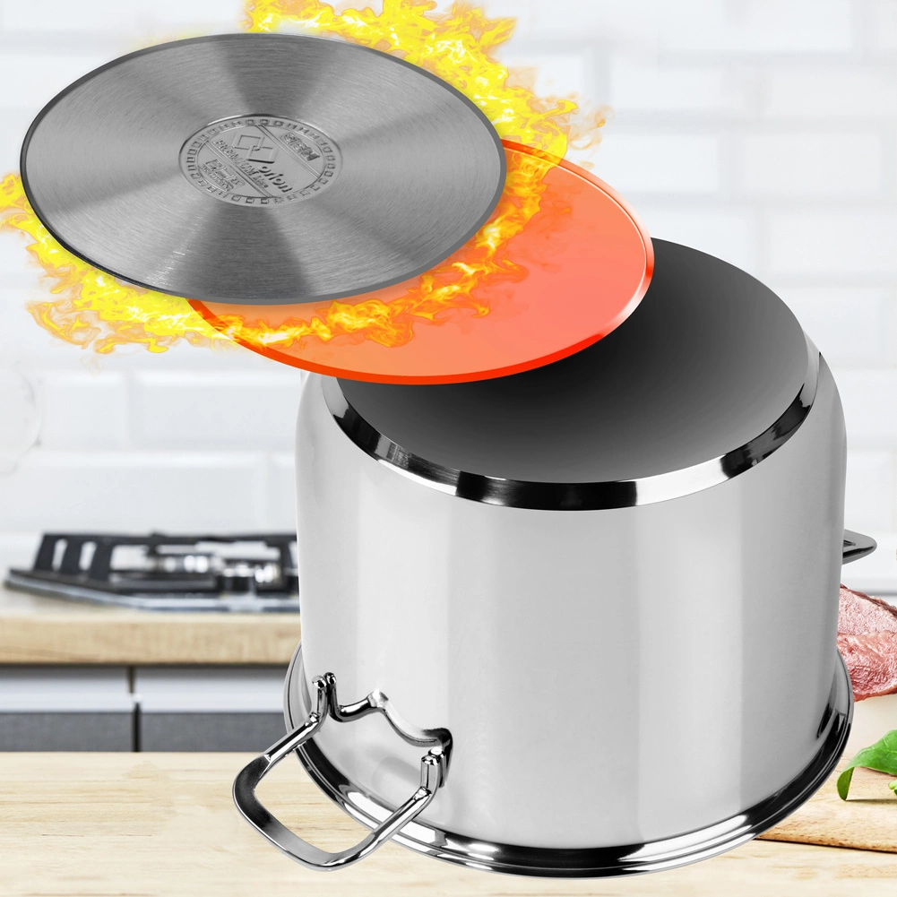 Večslojno akutermično dno učinkovito porazdeljuje toploto in jo akumulira za varčno kuhanje na vseh vrstah štedilnikov, vključno z indukcijo.