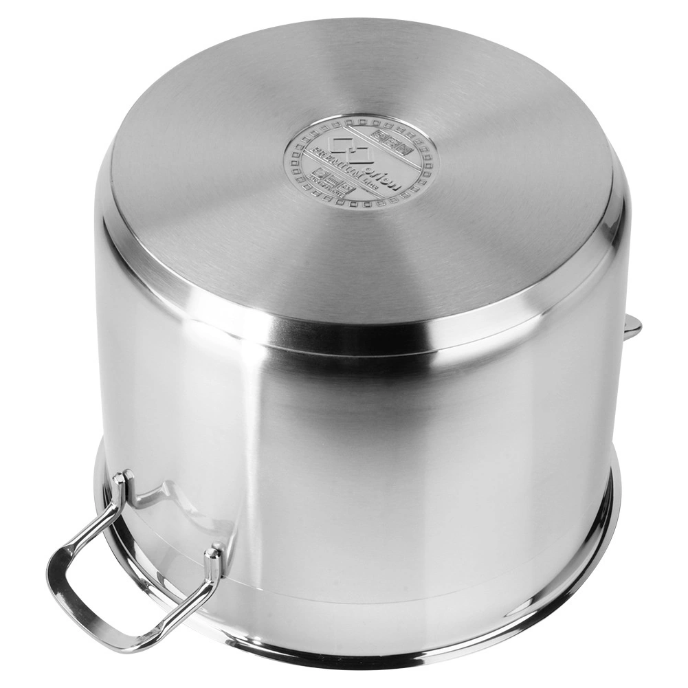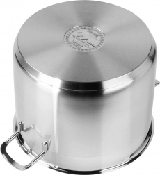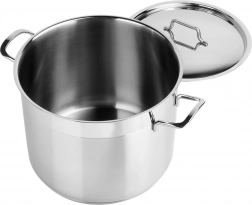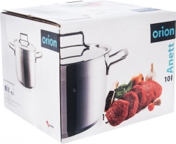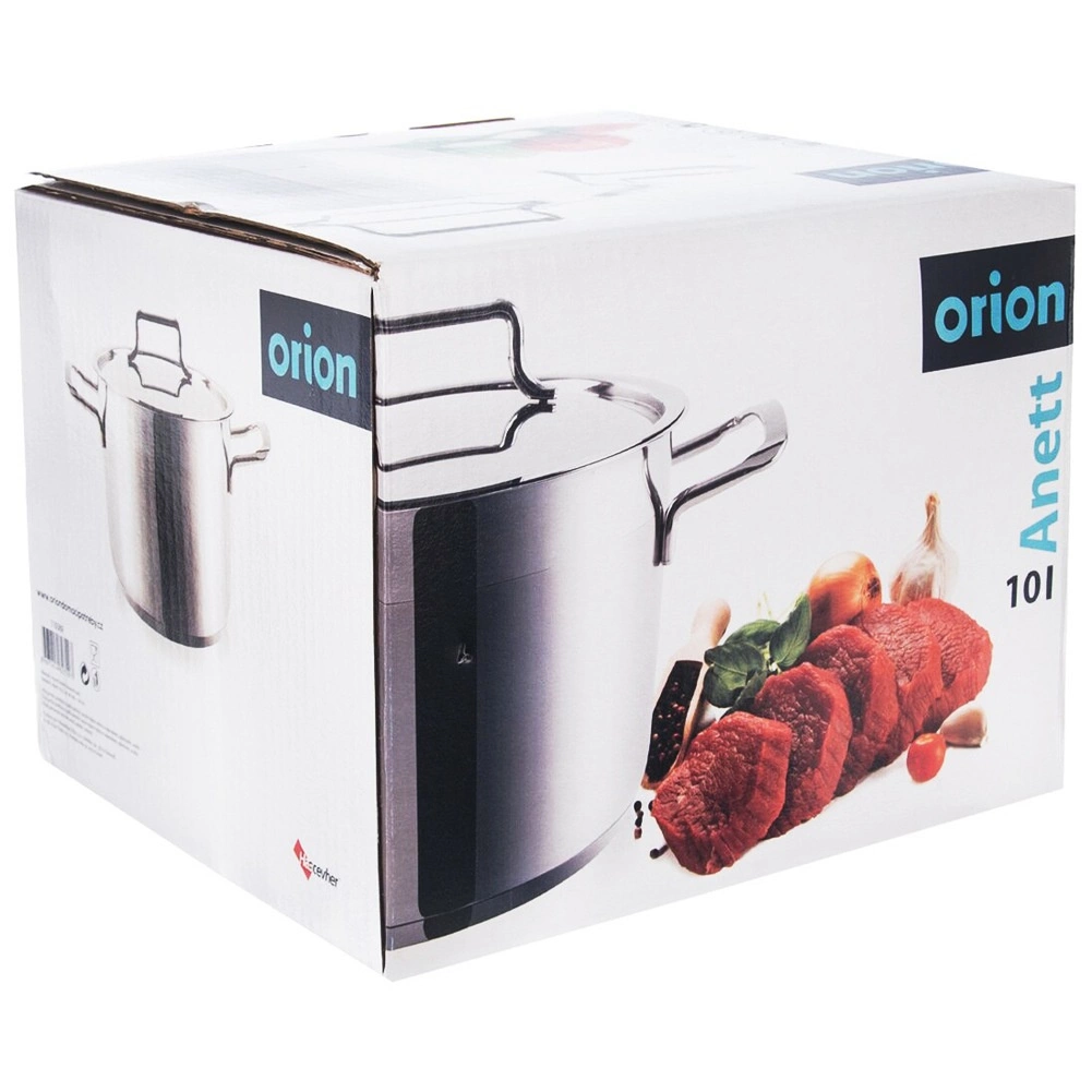 Nerjavni lonec Anett 10 l nudi dovolj prostornine za juhe, jušne osnove in dušene jedi. Iz kakovostnega nerjavnega jekla 18/10 z mat površino in dekorativnim sijočim pasom zagotavlja dolgo življenjsko dobo, eleganten videz in enostavno vzdrževanje. Zahvaljujoč večslojnemu akutermičnemu dnu odlično akumulira in enakomerno razporeja toploto, zato kuhate hitreje in varčneje.