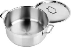 Priložen je natančno prilegajoč se nerjavni pokrov in udobna stranska ročaja za varno rokovanje. Zaradi dobro oblikovanega telesa se lonec preprosto čisti in ga je mogoče pomivati v pomivalnem stroju. Odlična izbira za juhe, omake in dušene jedi.