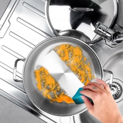 Močne stene in kakovostna zlitina zagotavljajo dolgo življenjsko dobo, odpornost proti koroziji in enostavno čiščenje. Mat površina z bleščečim zgornjim pasom doda eleganten videz.
