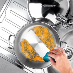 Kakovostno nerjavno jeklo 18/10 z mat površino in poliranim pasom je odporno proti koroziji, ohranja videz tudi pri intenzivni uporabi in se zlahka čisti.
