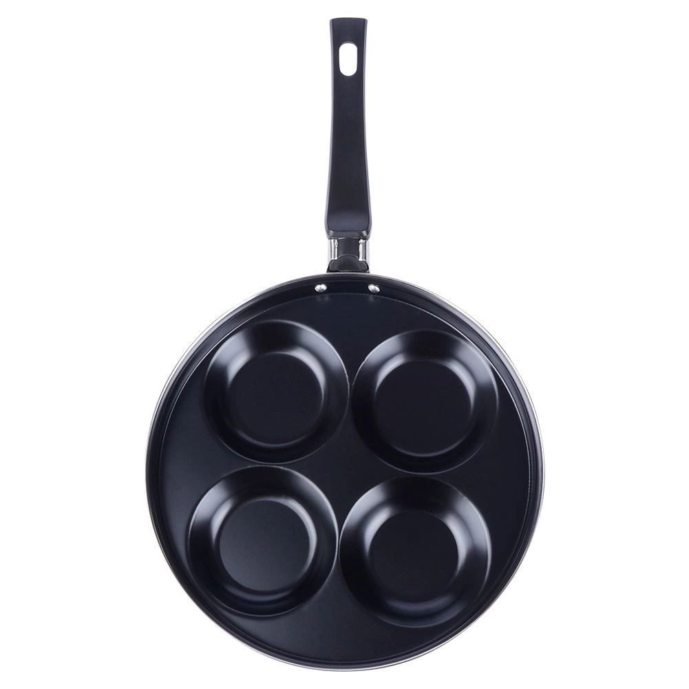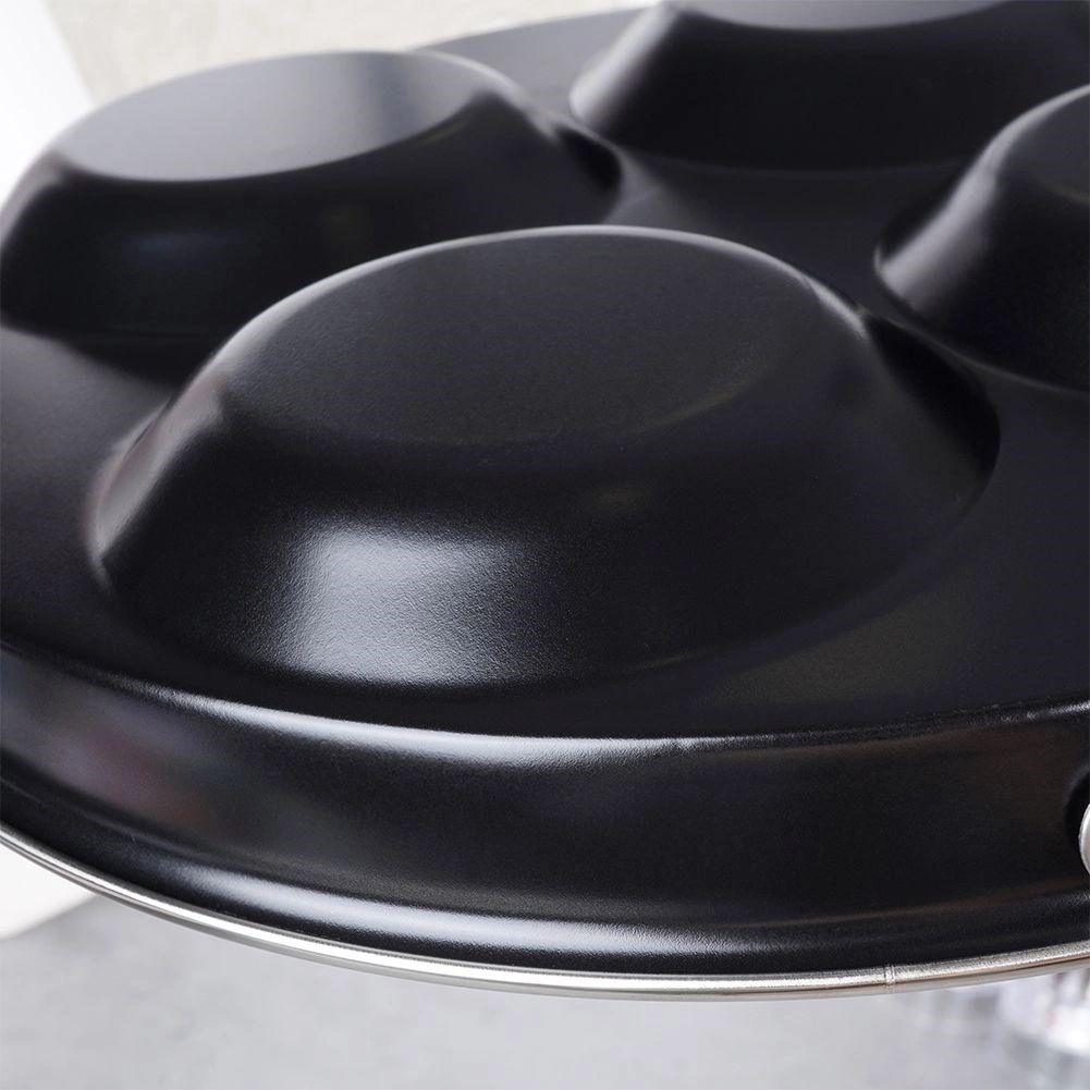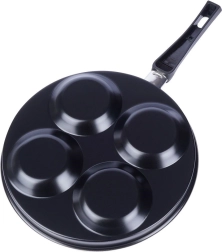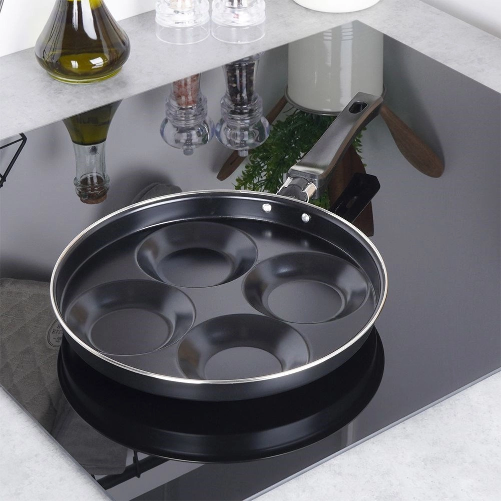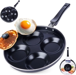 Štiri okrogle vdolbine premera 8 cm zagotavljajo enakomerno obliko in zapečenost vsakega jajca ali palačinke – idealno za hitro in urejeno zajtrk.