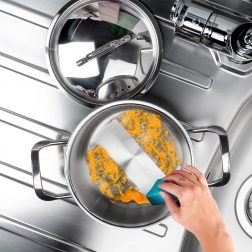 Debelega stenja, čvrsti ročaji in kakovostno nerjaveče jeklo 18/10 zagotavljajo stabilnost, odpornost proti koroziji in enostavno čiščenje v pomivalnem stroju.