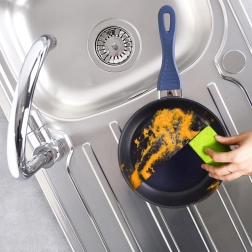 Modra izvedba korpusa in ergonomskega ročaja s silikonsko površino doda kuhinji slog ter prinese zanesljiv, udoben oprijem. Ponev je odporna proti kemični koroziji, ki jo povzročajo detergenti, in je primerna za pomivanje v pomivalnem stroju. Originalen izdelek češke znamke ORION, izdelan v skladu z evropskimi standardi.