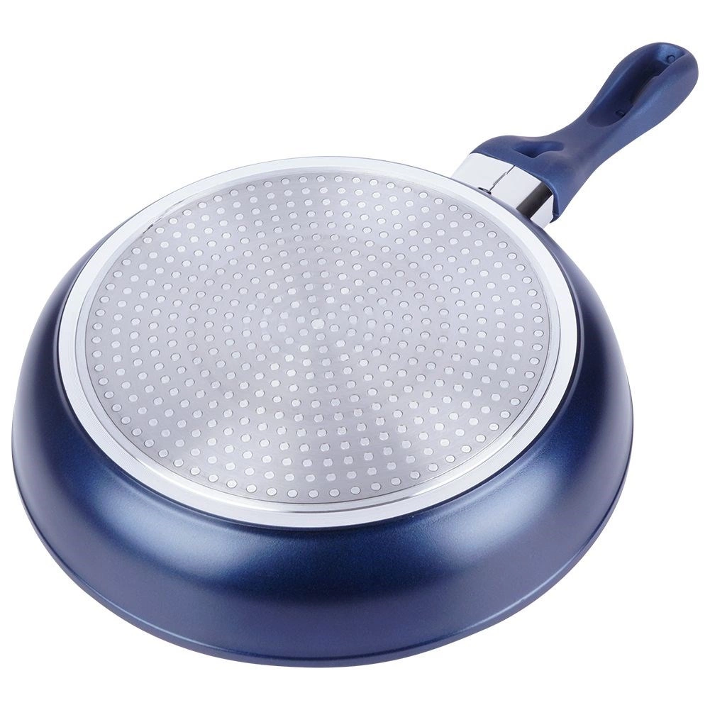 Robustna ponev z diamantno površinsko obdelavo prinaša vrhunsko nelepljivost in odličen prenos toplote. Zahvaljujoč diamantnim delcem v keramični plasti se toplota razporeja hitreje in enakomerneje, zato dosežete hrustljavo skorjico in sočno sredico brez prijemanja. Sodobna temno modra izvedba poživi vsako kuhinjo.