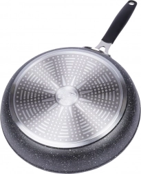 Masivno aluminijasto telo in večslojno dno zagotavljata hiter dvig temperature in enakomerno porazdelitev toplote po celotni ponvi.