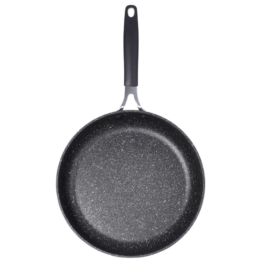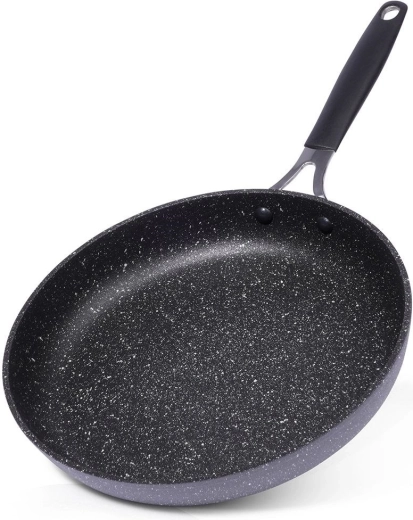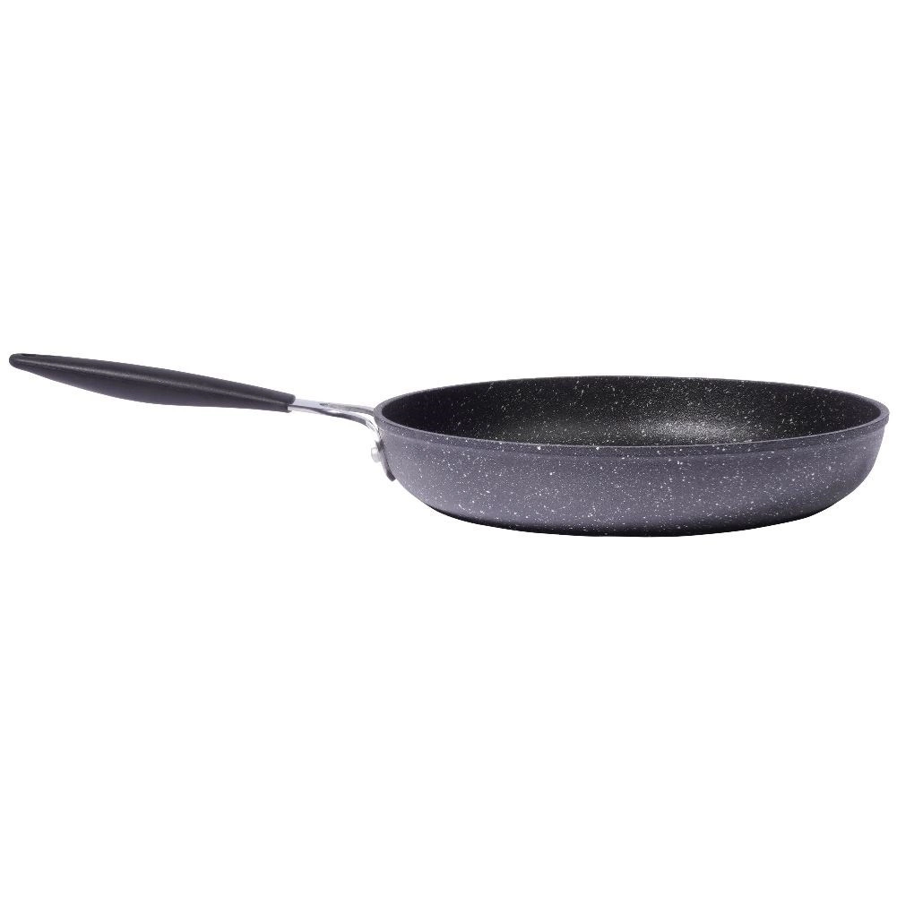 Kamnita nelepljiva plast zmanjšuje prijemanje in omogoča pripravo okusnih jedi z manj olja. Idealno za jajca, zrezke in zelenjavo.