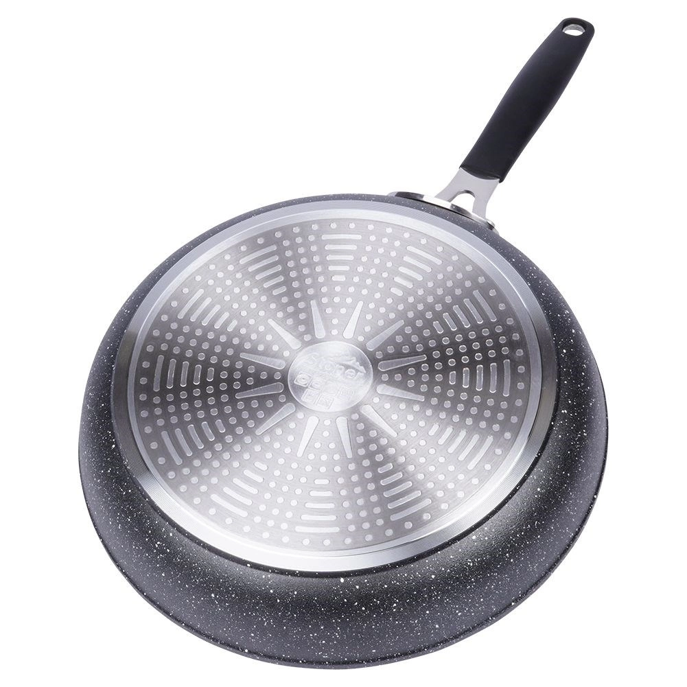 Odkrijte zanesljivo ponev ORION STONER z nelepljivo kamnito prevleko, ki obvlada cvrenje, praženje in dušenje. Masiven aluminijast liv zagotavlja hitro segrevanje, varčuje z energijo in enakomerno razporeja toploto po celotni površini. Tako bodo zrezki, jajca in zelenjava lepo pripravljeni brez prijemanja.