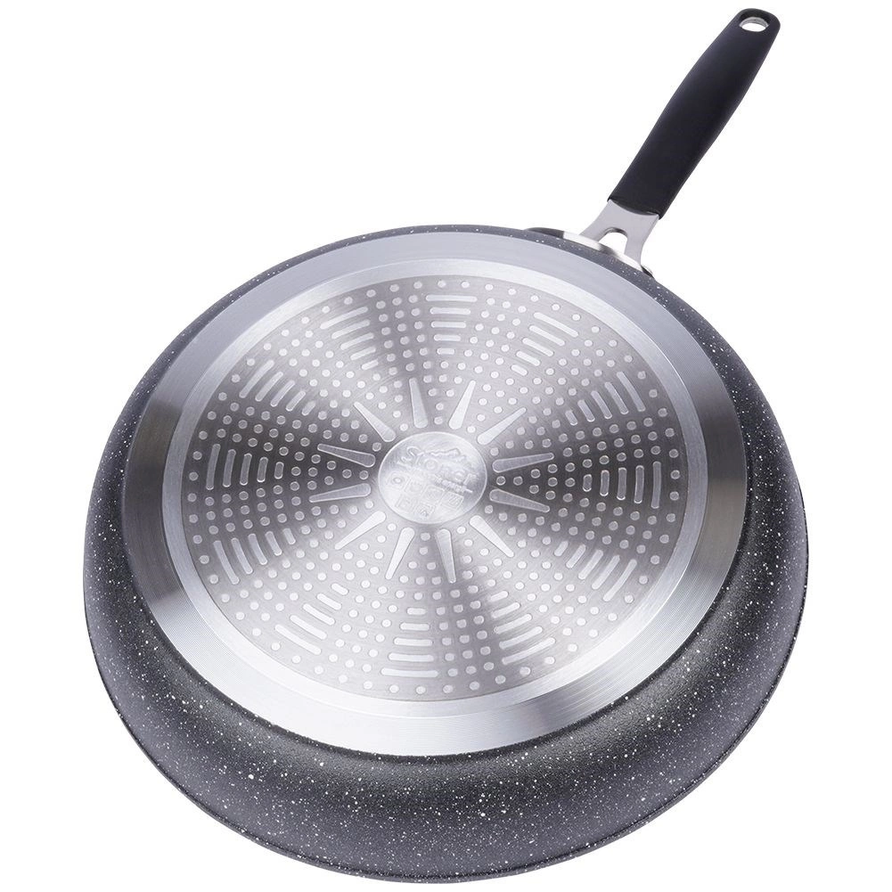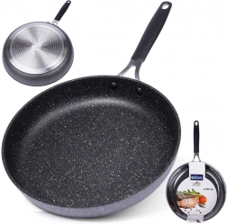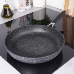 Uživajte v udobnem in zdravem kuhanju s ponevjo STONER 28 cm. Masivno telo iz aluminijastega ulitka z granitno obdelavo zagotavlja odlično akumulacijo in distribucijo toplote, zato se jedi prepečejo enakomerno brez prijemanja. Nelepljiva površina omogoča pečenje z minimalno količino olja in olajša vsakodnevno vzdrževanje.