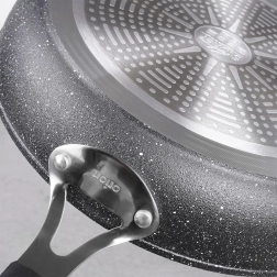 Zaradi večslojnega dna se toplota enakomerno porazdeli, ponev pa odlično deluje na indukciji, plinu, elektriki in steklokeramiki.