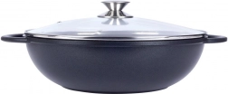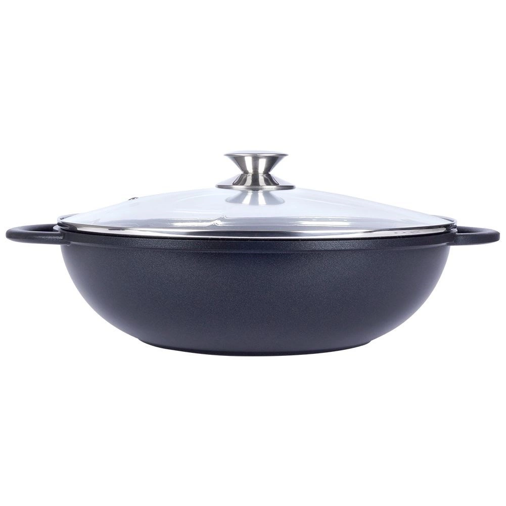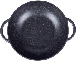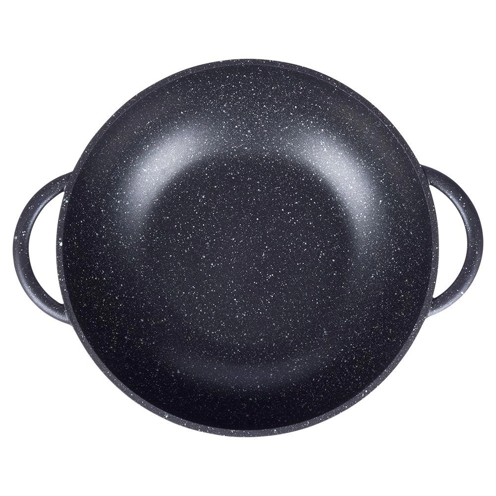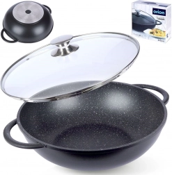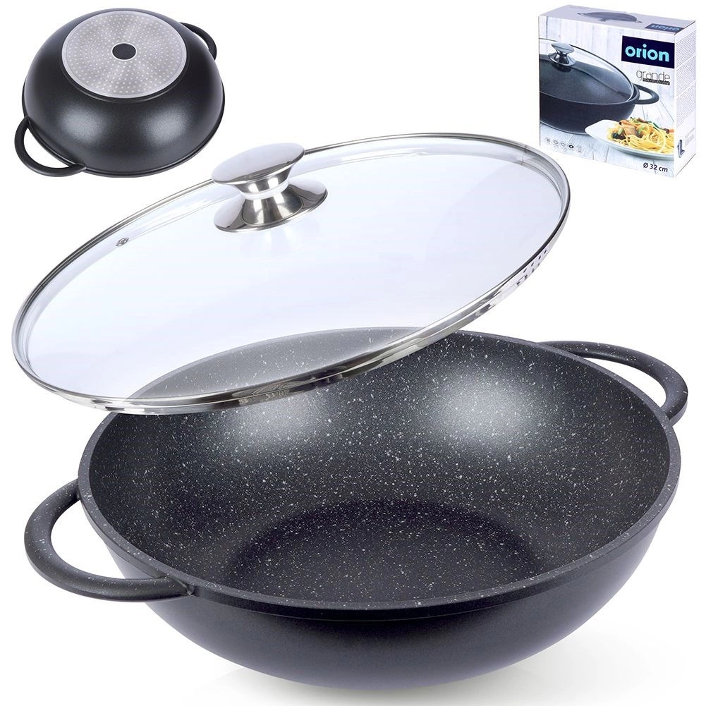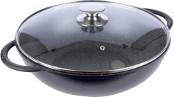 Odkrijte udobno kuhanje z vokom iz trpežnega aluminija z notranjo granitno površinsko obdelavo PFLUON, ki je neprijemljiva, odporna proti praskam in visokim temperaturam. Zaradi širokega dna in visokih stranic je idealen za stir‑fry, zelenjavo, meso in testenine. Prozorna steklena pokrovka z nerjavečim robom in odprtino za izpust pare olajša nadzor nad kuhanjem.