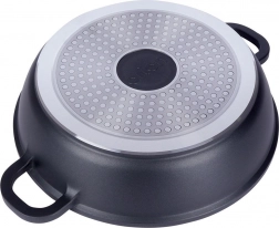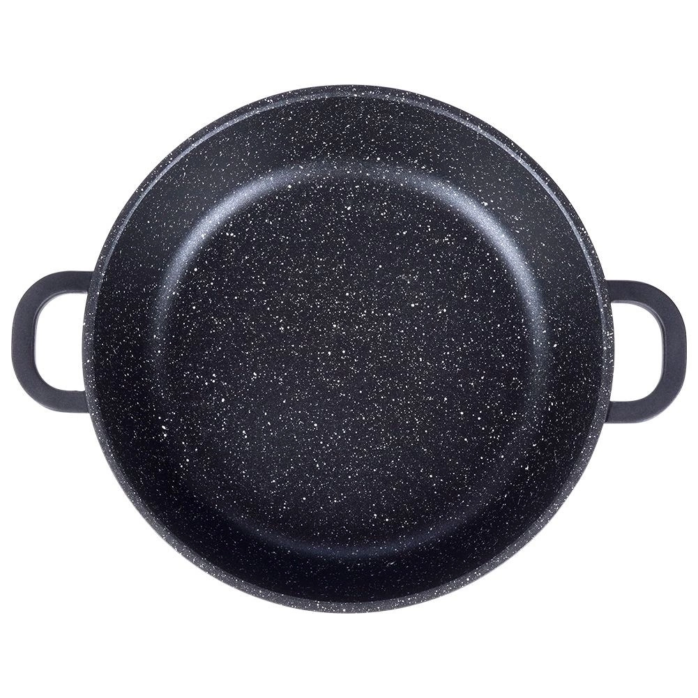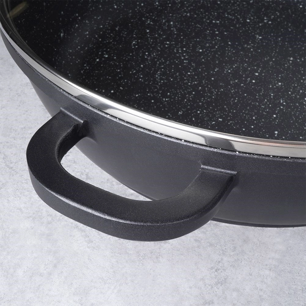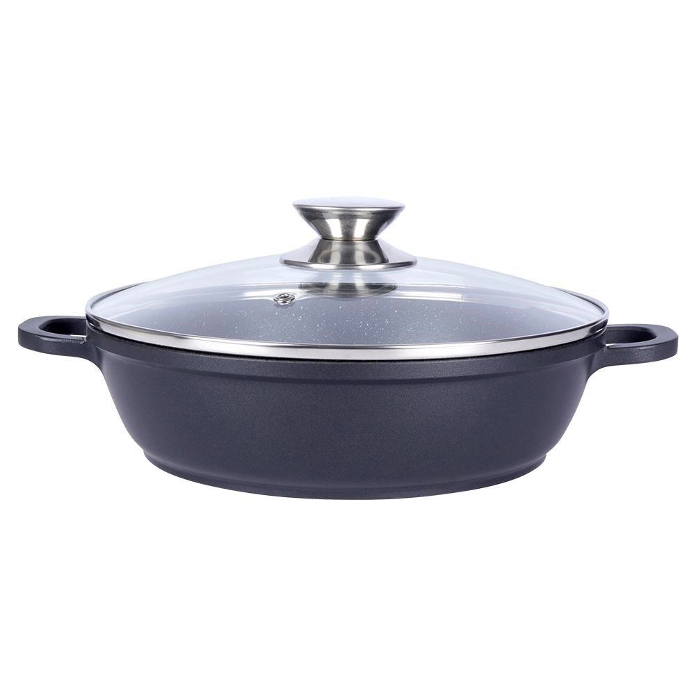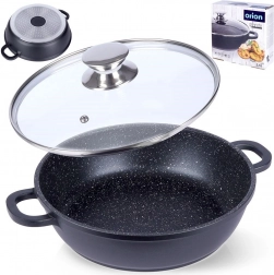 Ta trpežna granitna ponev je idealna za cvrtje, praženje in dušenje. Močno aluminijasto telo v kombinaciji z granitno površino PFLUON zagotavlja odlično neprijemljivost, enostavno čiščenje in pripravo jedi z minimalno maščobo. Stekleni pokrov z nerjavnim robom in parnim ventilom pomaga ohranjati toploto in sočnost jedi.