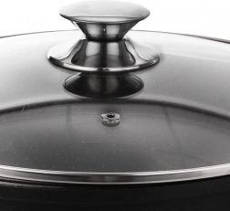 Pokrov z nerjavnim robom in ventilom omogoča nadzor kuhanja in varno izpustitev pare.