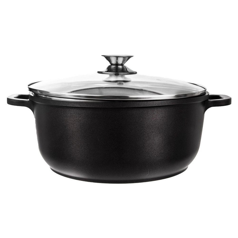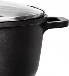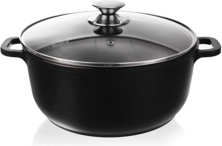 Robusten lonec GRANDE v elegantni črni barvi je idealen za juhe, omake in enolončnice. Zahvaljujoč neprijemljivi granitni plasti PFLUON se sestavine ne prijemajo in ohranjajo naraven okus ter hranilne snovi. Stekleni pokrov z odzračevalnim ventilom ohranja optimalen tlak in vlago.