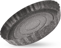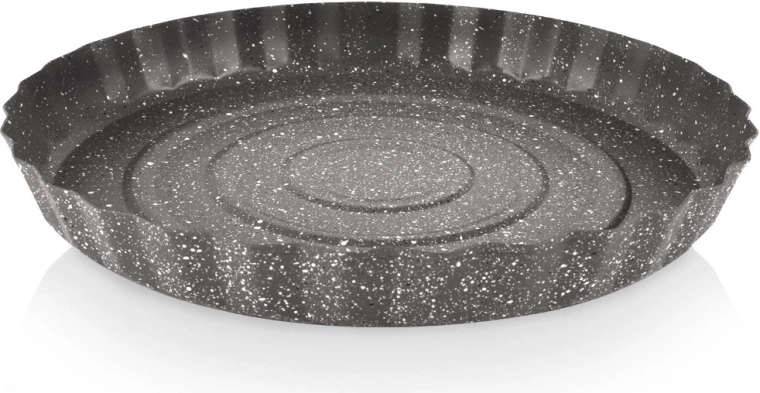 Elegantni okrogli pekač za pito GRANDE z granitnim videzom zagotavlja enakomerno peko in enostavno odstranjevanje testa brez prijemanja. Zahvaljujoč neprijemljivi površinski obdelavi skoraj ne potrebujete maščobe ali moke, zato je peka hitrejša in čistejša.
