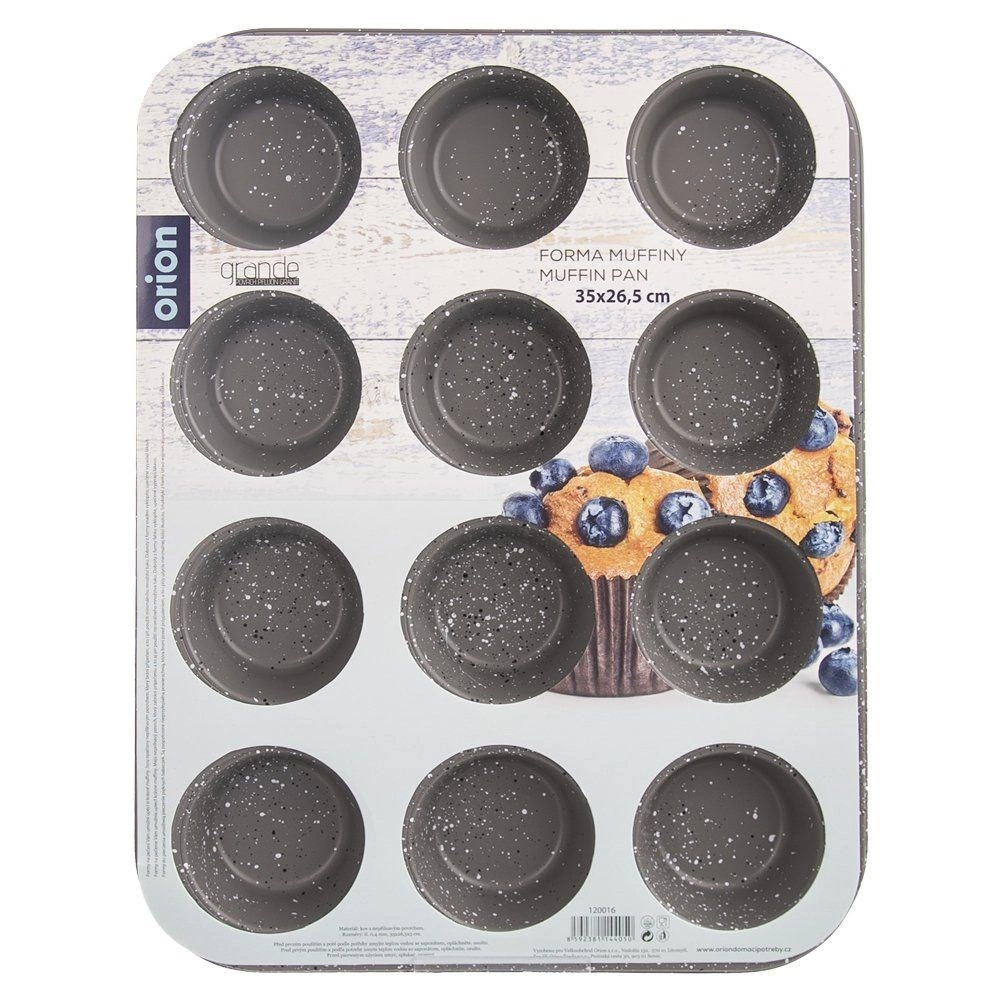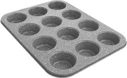 Praktičen granitni pekač za mafine za peko do 12 kosov hkrati. Zahvaljujoč neprijemljivemu premazu iz ogljikovega jekla se testo ne prijema in peka je enostavna tudi z minimalno količino maščobe. Pekač je odporen do 230 °C, primeren za plinske in električne pečice ter ga je mogoče pomivati v pomivalnem stroju – idealen za domače mafine, cupcakes, mini sladice in piškote.