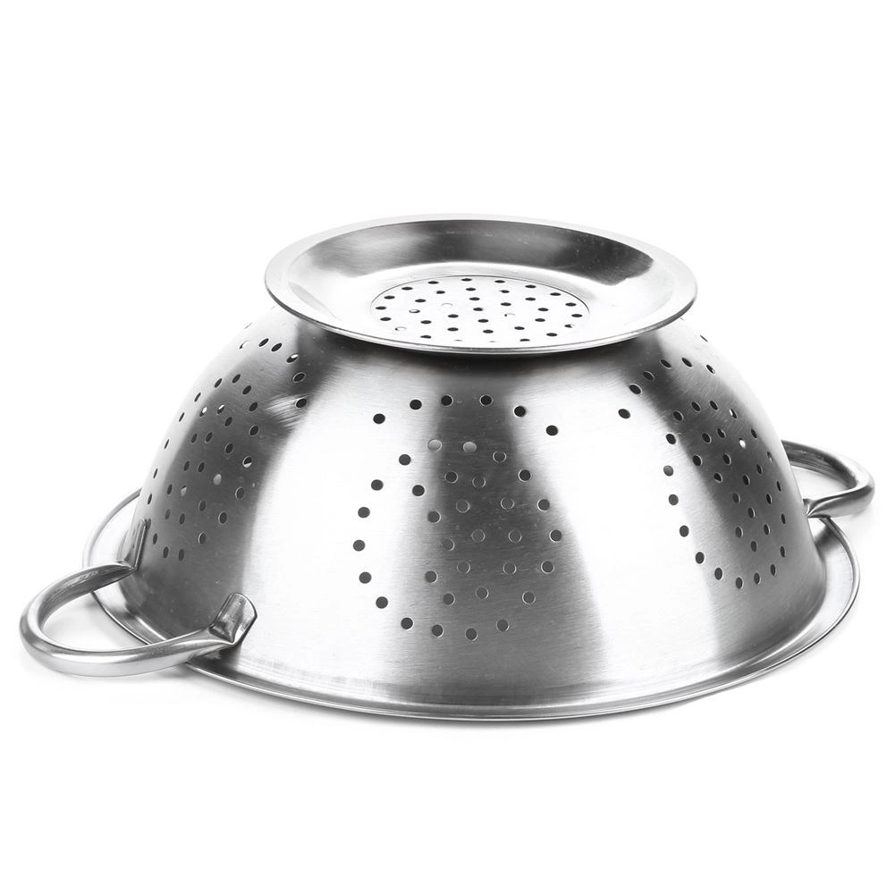 To prostorno cedilo v obliki sklede olajša vsakodnevno delo v kuhinji – od izpiranja sadja in zelenjave do cejenja riža in testenin. Robusten nerjavni jeklen material zagotavlja dolgo življenjsko dobo, odpornost proti koroziji in enostavno čiščenje.