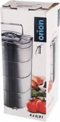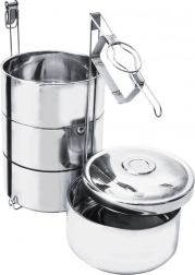 Ta 4-nadstropna termo posoda je idealna za vsakodnevno uporabo in aktivnosti na prostem. Štiri ločene posode omogočajo prenašanje glavne jedi, priloge in deserta brez mešanja okusov. Zahvaljujoč dvoslojni konstrukciji z vakuumsko izolacijo hrana dlje časa ohrani želeno temperaturo. Stabilen žičnat okvir z varnostnimi zapirali trdno drži vsa nadstropja skupaj, zgornji ročaj pa olajša prenašanje.