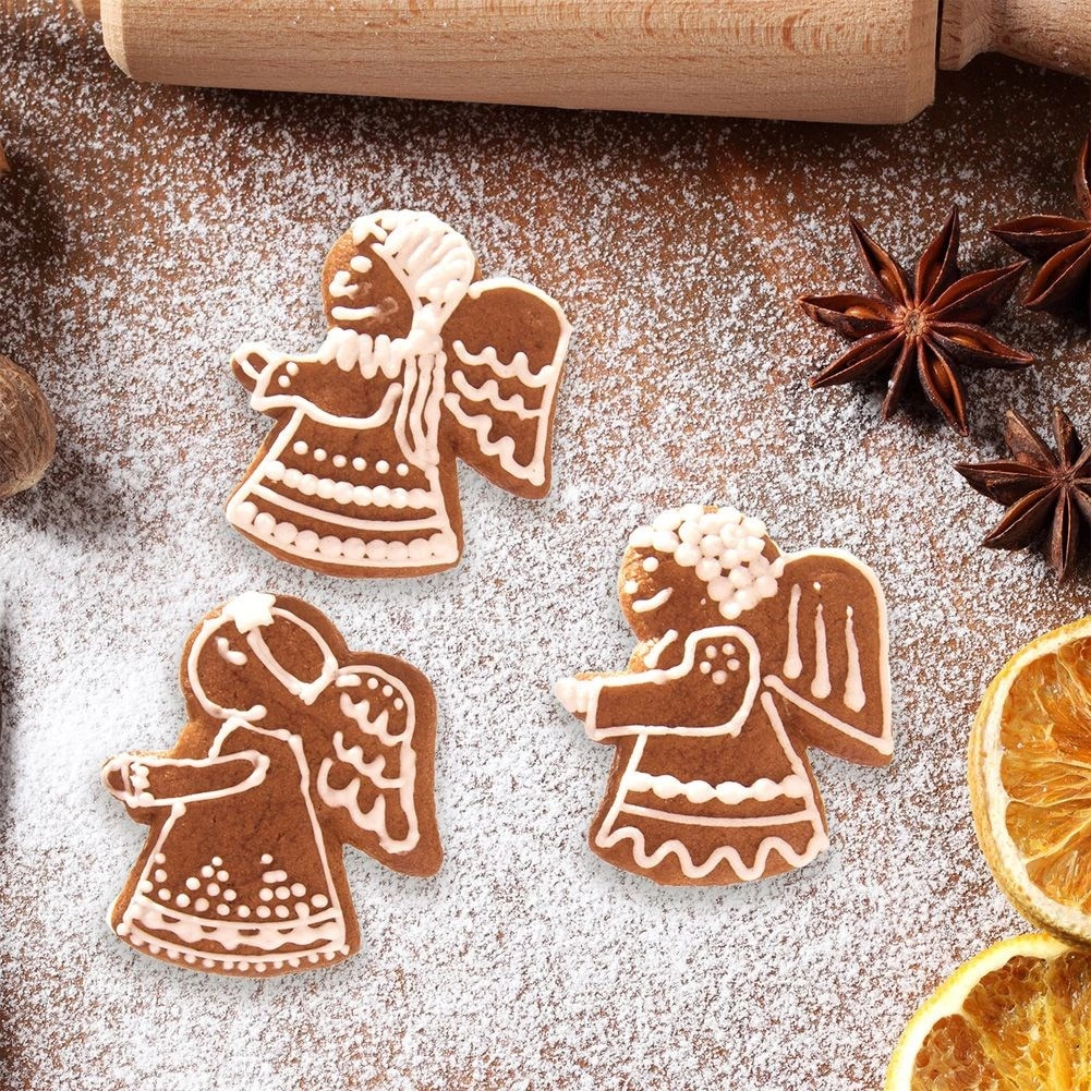 Modelček v obliki angelčka vam pomaga ustvariti popolne piškote in medenjake z nežnim prazničnim motivom. Zahvaljujoč nerjavnemu jeklu je trpežen, higieničen in odporen proti koroziji, zato zdrži tudi pri pogosti uporabi. Odlično se poda k božični peki, pa tudi k ustvarjalnemu okraševanju tort in sladic.