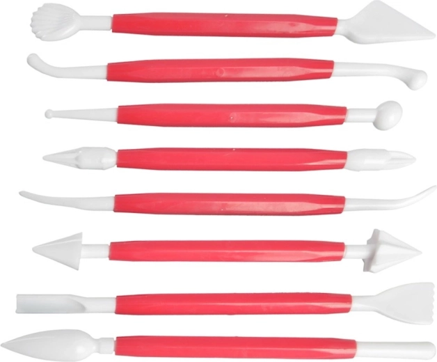 Vsako od 8 orodij ima dve različni konici – kroglice, stožce, lopatke ali rezila – za natančno oblikovanje fondanta in marcipana.