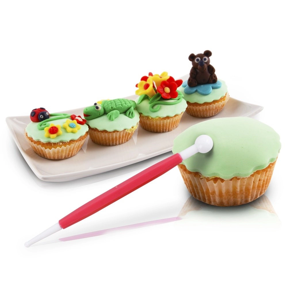 Ustvarjajte profesionalne slaščičarske dekoracije preprosto in hitro. Set vsebuje osem lahkih, dvostranskih orodij z različnimi konicami – kroglice, stožci, lopatke, rezila, školjke ali špice – ki vam omogočajo oblikovanje, glajenje, rezanje, teksturiranje in embossiranje marcipana, fondanta in drugih modelirnih slaščičarskih mas.