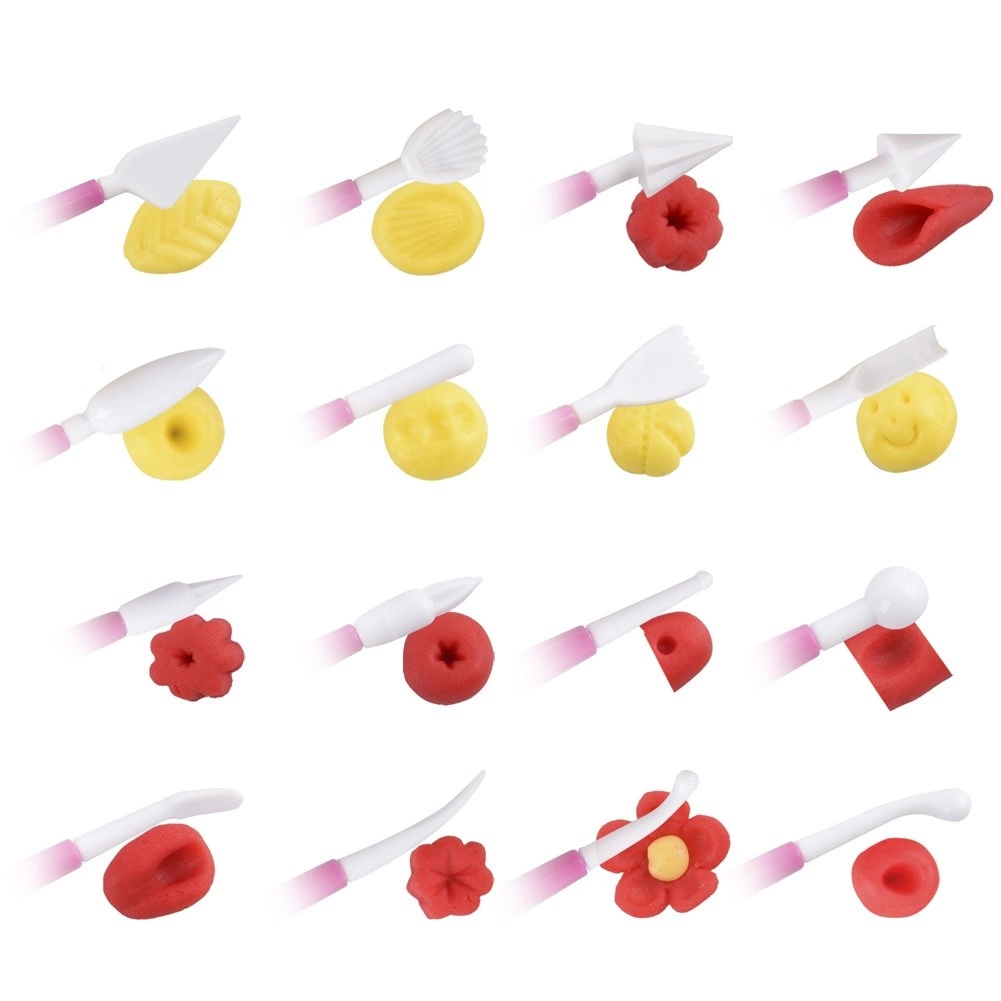 Z 16 edinstvenimi nastavki boste obvladali nežne detajle cvetov, cvetnih listov, figuric in čipkastih robov. Orodja so iz odporne plastike, prijetna za držanje in enostavna za čiščenje. Barve (rdeča, rožnata, rumena, zelena) so dobavljene naključno.
