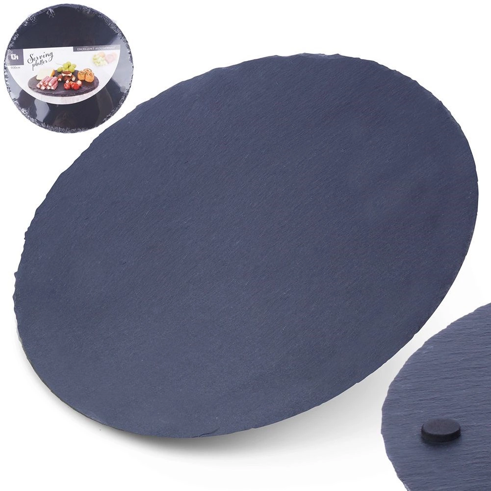 Temna skrilavčna površina z naravno grobimi robovi daje serviranju edinstven slog in vrhunsko prezentacijo jedi.