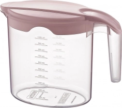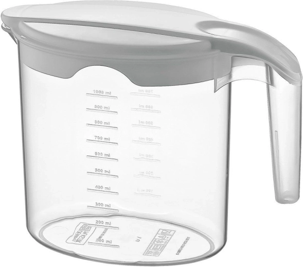 Lahek in trpežen plastičen vrč 1 l je zasnovan za udobno uporabo v kuhinji in na prostem. Praktičen izlivalnik zagotavlja čisto nalivanje brez kapljanja, medtem ko zapiralni pokrov ščiti pijače pred prahom in žuželkami. Zaradi merilne lestvice je primeren tudi za natančno odmerjanje tekočin.