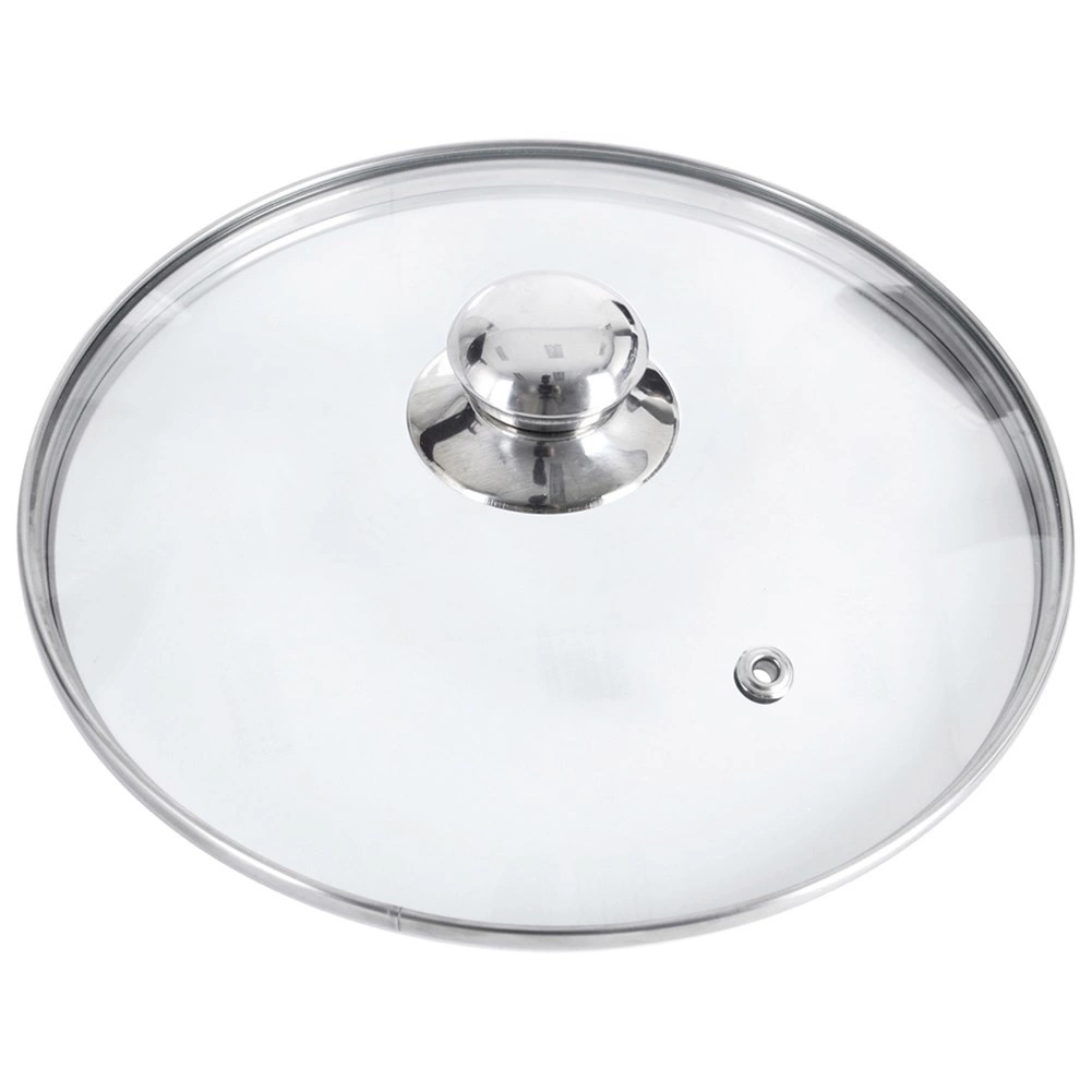 Steklen pokrov s premerom 30 cm je idealen dodatek za vsako kuhinjo. Prosojno, toplotno odporno steklo omogoča nadzor kuhanja brez nepotrebne izgube toplote in pare, medtem ko parni ventil odvaja odvečno vlago. Nerjaveč rob in gumb zagotavljata vzdržljivost in dolgo življenjsko dobo.
