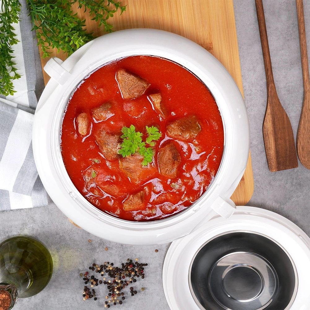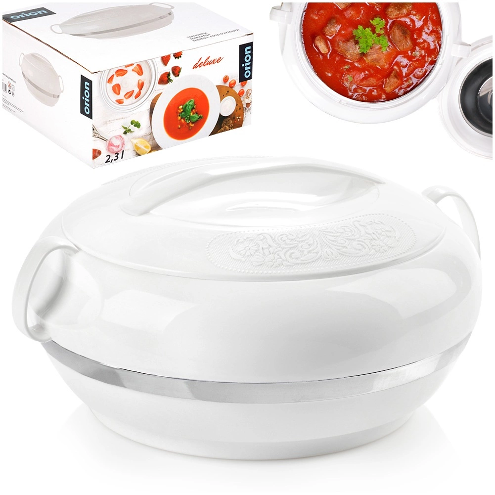 Elegantna termoposoda ORION Deluxe je odlična pomočnica za vsakodnevno obedovanje in vikend zabave. Ohranija temperaturo pripravljenih jedi, juh ali prilog do dve uri, poleti pa je primerna tudi za hlajenje sladoleda ali sladic. Notranja gladka površina iz nerjavnega jekla se enostavno čisti in je higienska.