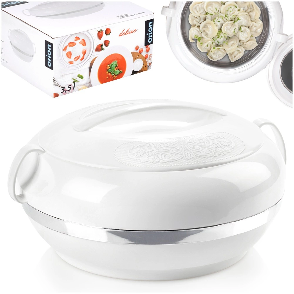 Ohranjajte juhe, priloge in glavne jedi pri optimalni temperaturi zahvaljujoč dvojni izolaciji. Notranja nerjaveča posoda je higienska, trpežna in enostavna za čiščenje, medtem ko lahko zunanje lahko ohišje z reliefnim vzorcem deluje elegantno na vsaki mizi.