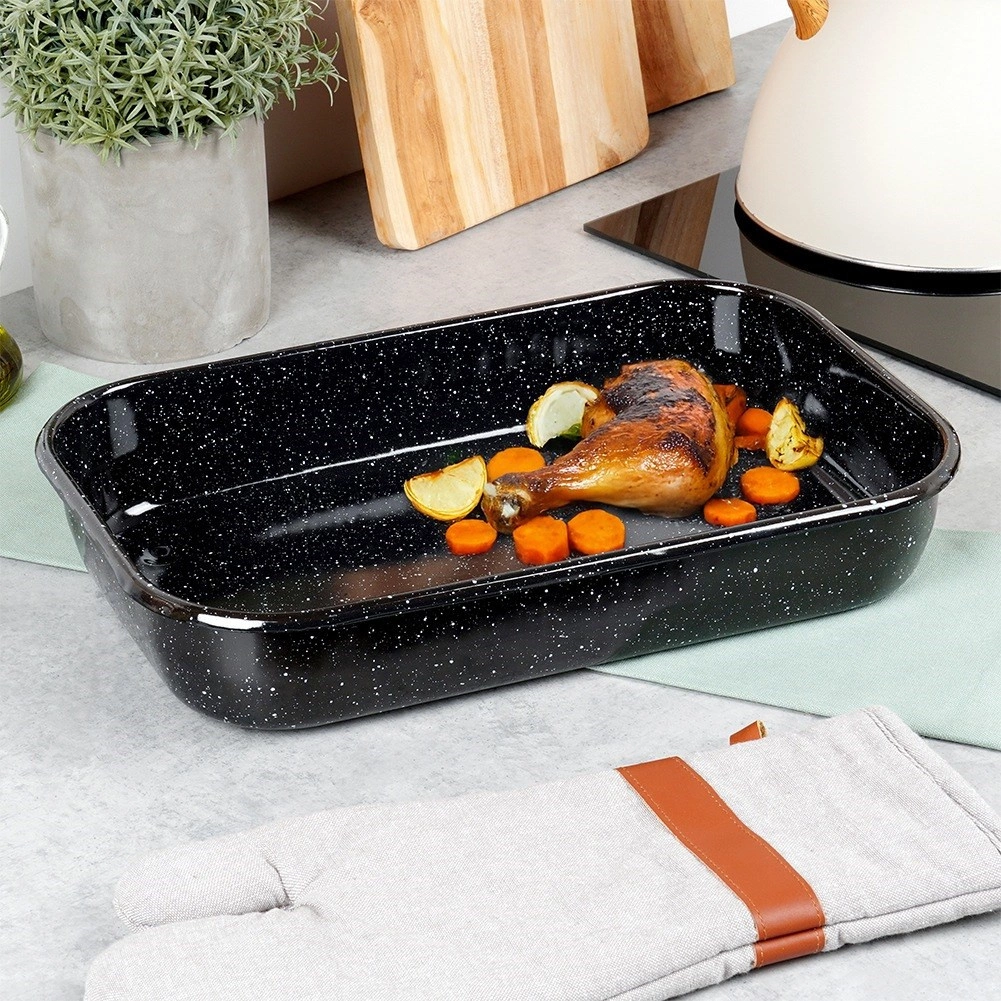 Pravokoten pekač iz emailiranega jekla je trpežen, higienski in odlično prevaja toploto za enakomerno peko jedi. Emajl je prijazen do zdravja in primeren tudi za alergike. Zahvaljujoč univerzalnim meram 38 × 24,5 × 7 cm (notranje 36 × 22,5 × 6 cm) je primeren za peko mesa, zelenjave, narastkov in sladic.