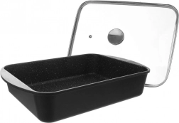 Robusten pekač GRANDE z merami 35 × 22,5 × 8 cm (višina s pokrovom 12 cm) je vsestranski pomočnik za vsako kuhinjo. Livano aluminijasto telo se odlično segreva, granitni neprijemljivi premaz PFLUON GRANIT brez PFOA in PTFE zmanjšuje prijemanje in omogoča kuhanje z manj maščobe. Stekleni pokrov s kovinskim ročajem in parnim ventilom ohranja sočnost jedi ter olajša nadzor poteka kuhanja.