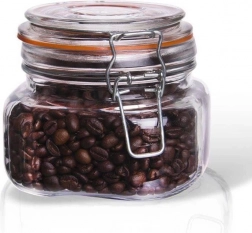 Ta vsestranski kozarec s patentnim (sponkastim) zapiranjem je odlična izbira za shranjevanje suhih sestavin in domačih vložnin. Debelo steklo ter zanesljiva kovinska sponka z oranžnim gumijastim tesnilom zagotavljata maksimalno tesnjenje in zaščito pred vlago.
